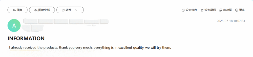 “I already received the products, thank you very much. Everything is in excellent quality. We will try them.”